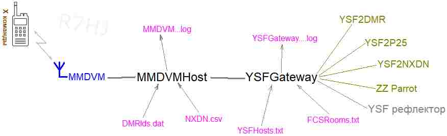 Описанный ниже mmdvm+ysfgateway, это классический hotspot для режима YSF, предполагаю что 90% линков/hotspot/репитеров используют именно такую конфигурацию.