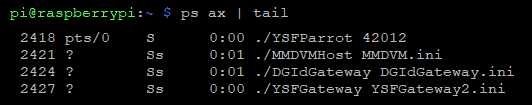 killall -q MMDVMCal MMDVMHost DGIdGateway YSFGateway YSFReflector YSFParrot cd ~/test/MMDVMHost ./MMDVMHost MMDVM.ini cd ~/test/YSFClients/DGIdGateway ./DGIdGateway DGIdGateway.ini